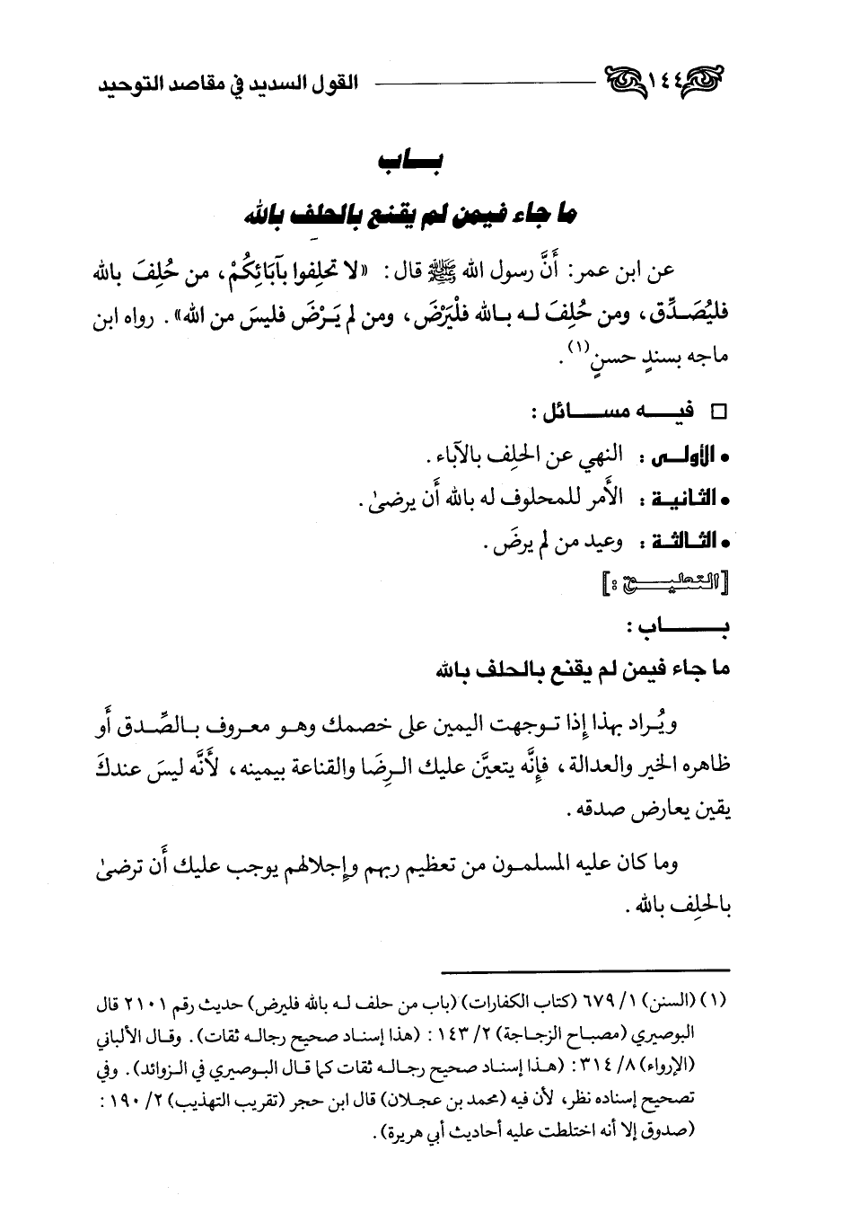 با ب ما جاء فيمن لم يقنع بالحلف بالله