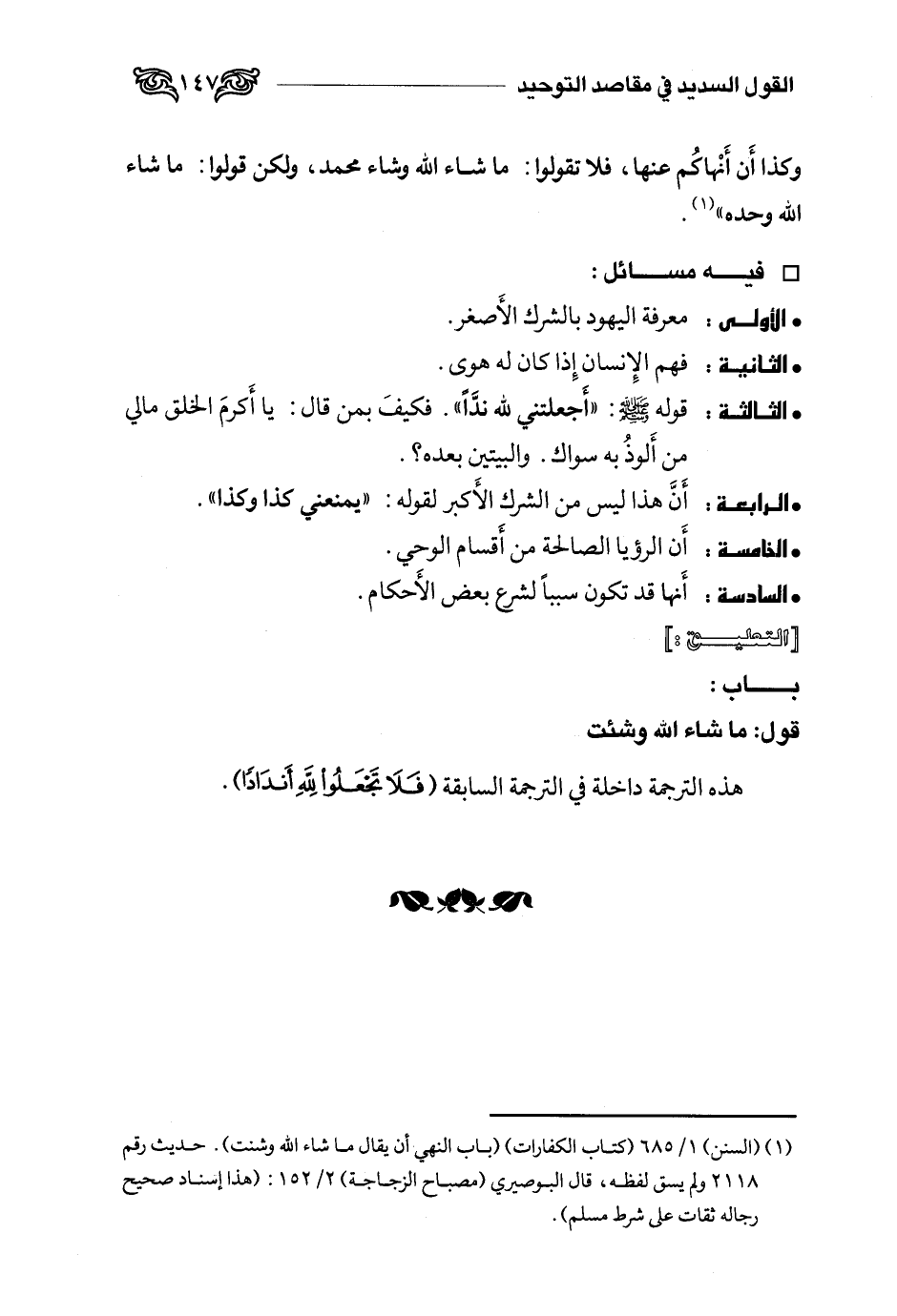 وكذا أن أنهاكم عنها، فلا تقولوا: ما شاء الله وشاء محمد، ولكن قولوا: ما شاء الله وحده "1.
