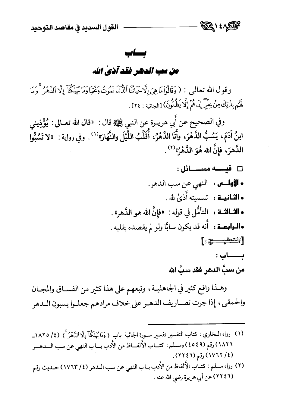 2 رواه البخاري: كتاب التفسير تفسير سورة الجاثية، باب وما يهلكنا إلا الدهر (4 /1825 - 1826) رقم (4549) ومسلم: كتاب الألفاظ من الأدب، باب النهي عن سب الدهر (4 /1762) رقم (2246) .