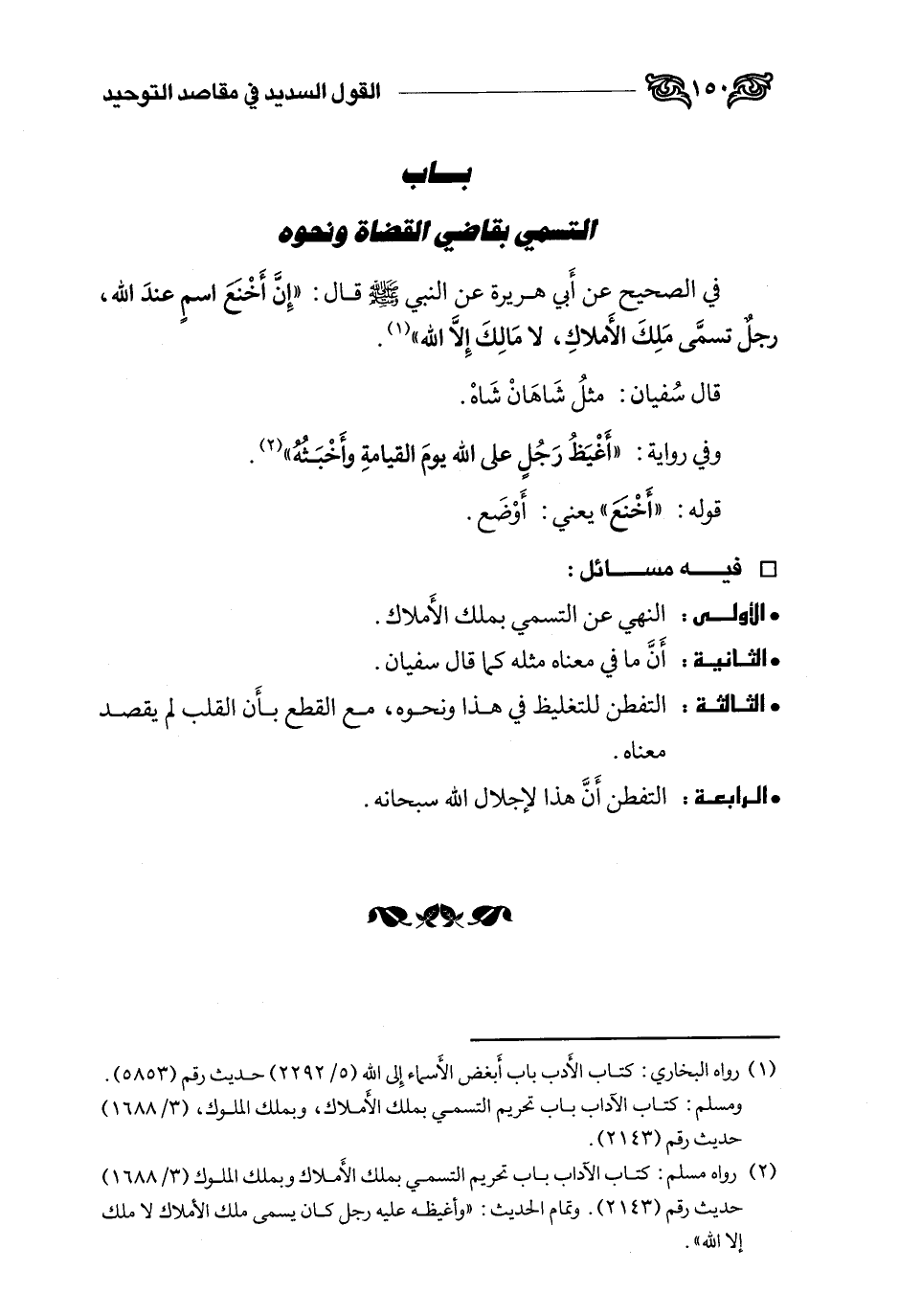 1 رواه البخاري: كتاب الأدب، باب أبغض الأسماء إلى الله (5 /2292) حديث رقم (5853) . ومسلم: كتاب الآداب باب تحريم التسمي بملك الأملاك, وبملك الملوك (3 /1688) حديث رقم (2143) .