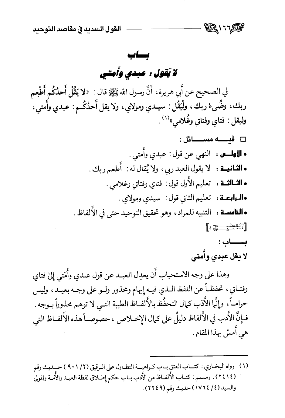 1 رواه البخاري: كتاب العتق، باب كراهية التطاول على الرقيق (2 /901) حديث رقم (2414) . ومسلم: كتاب الألفاظ من الأدب، باب حكم إطلاق لفظة العبد والأمة والمولى والسيد (4 /1764) حديث رقم (2249) .