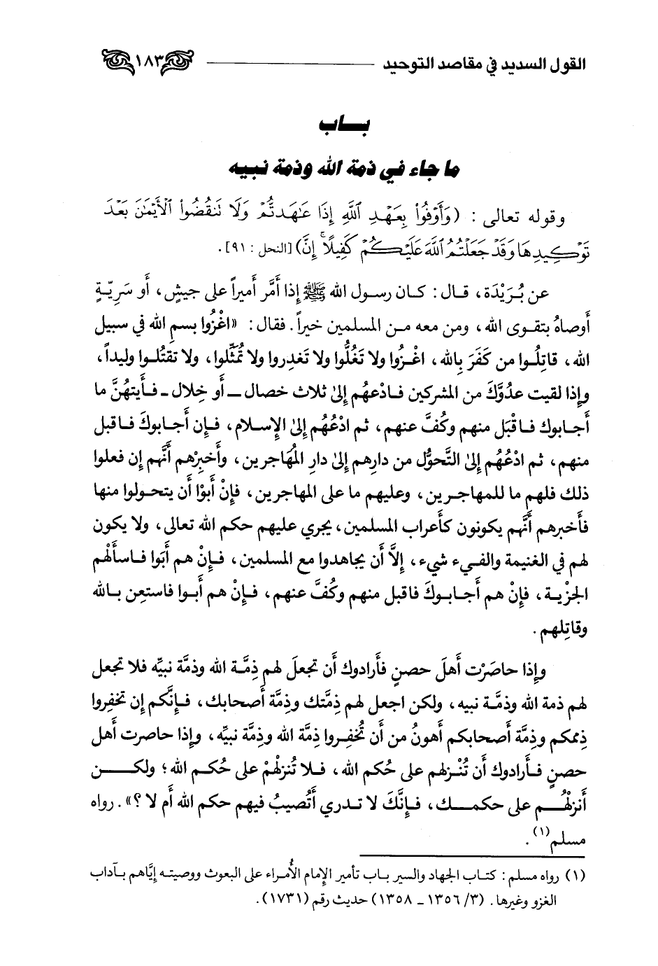 2 رواه مسلم: كتاب الجهاد والسير، باب تأمير الإمام الأمراء على البعوث ووصيته إياهم بآداب الغزو وغيرها. (3 /1356-1358) حديث رقم (1731) .