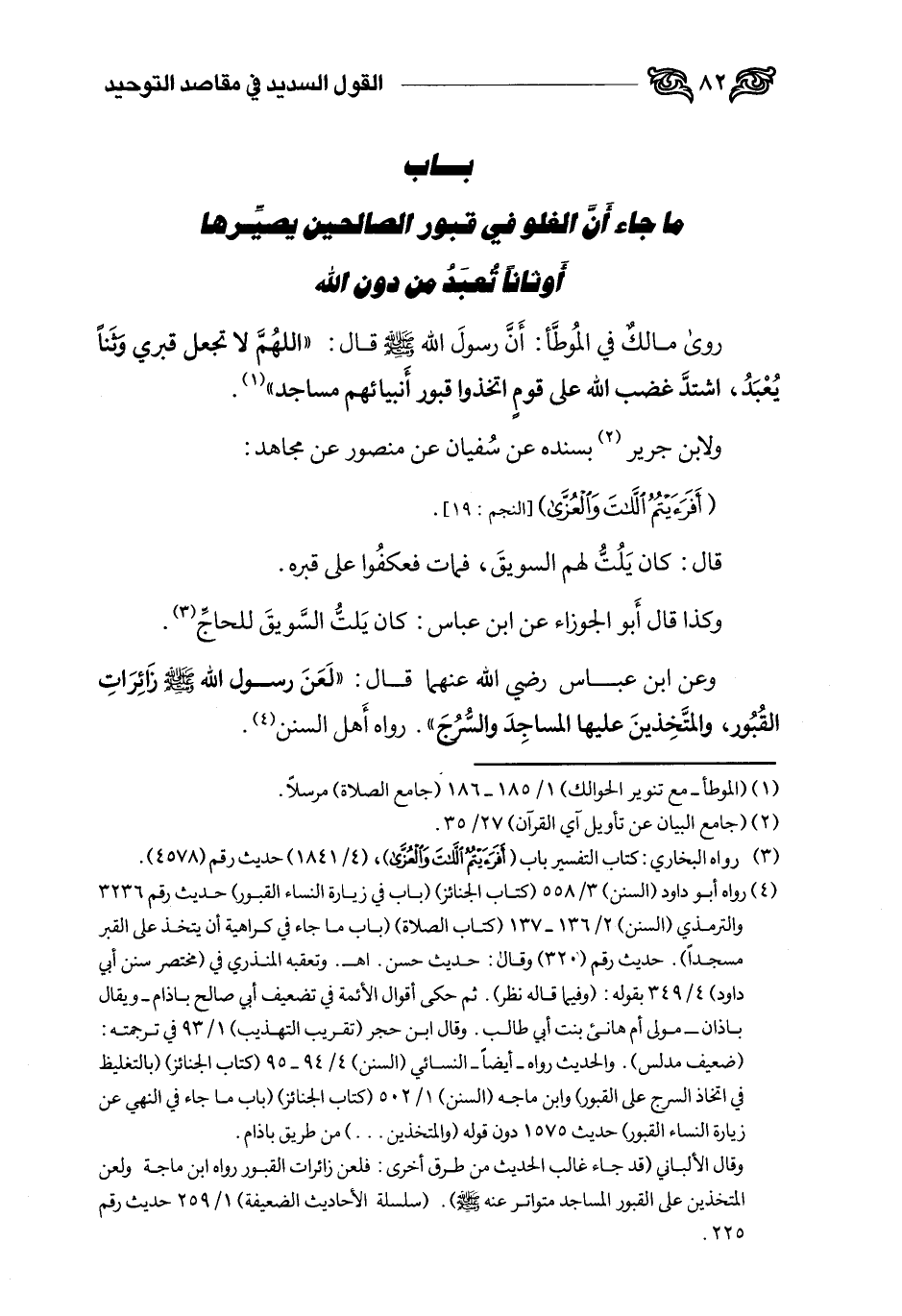 باب: ما جاء أن الغلو في قبور الصالحين يصيرها