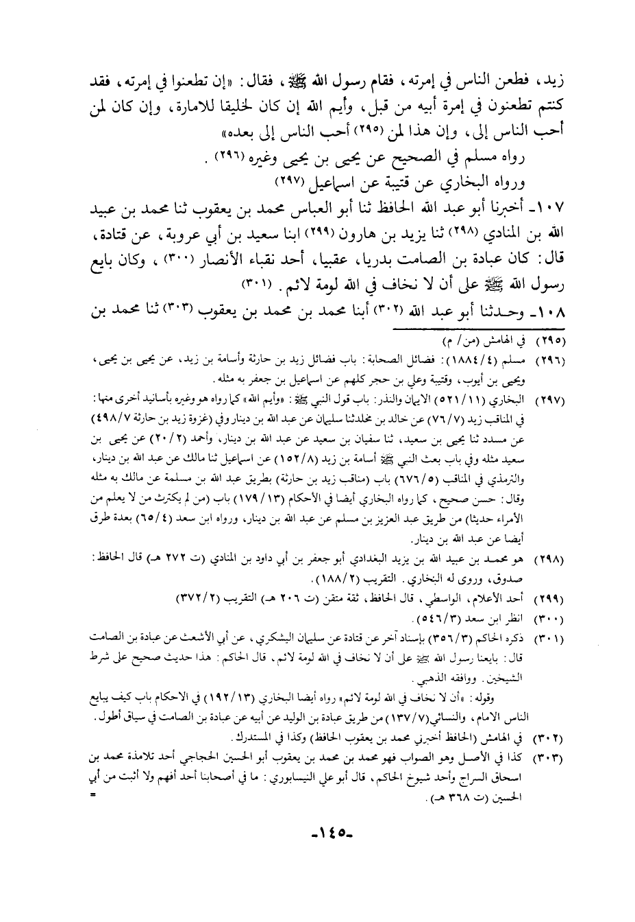 107 - أَخْبَرَنَا أَبُو عَبْدِ اللَّهِ الْحَافِظُ، ثنا أَبُو الْعَبَّاسِ مُحَمَّدُ بْنُ يَعْقُوبَ , ثنا مُحَمَّدُ بْنُ عُبَيْدِ اللَّهِ بْنِ الْمُنَادِي، ثنا يَزِيدُ بْنُ هَارُونَ، أبنا سَعِيدُ بْنُ أَبِي عَرُوبَةَ، عَنْ قَتَادَةَ قَالَ: كَانَ عُبَادَةُ بْنُ الصَّامِتِ بَدْرِيًّا عَقَبِيًّا , أَحَدُ نُقَبَاءِ الْأَنْصَارِ , وَكَانَ §بَايعَ رَسُولَ اللَّهِ صَلَّى اللهُ عَلَيْهِ وَسَلَّمَ عَلَى أَنْ لَا نَخَافَ فِي اللَّهِ لَوْمَةَ لَائِمٍ