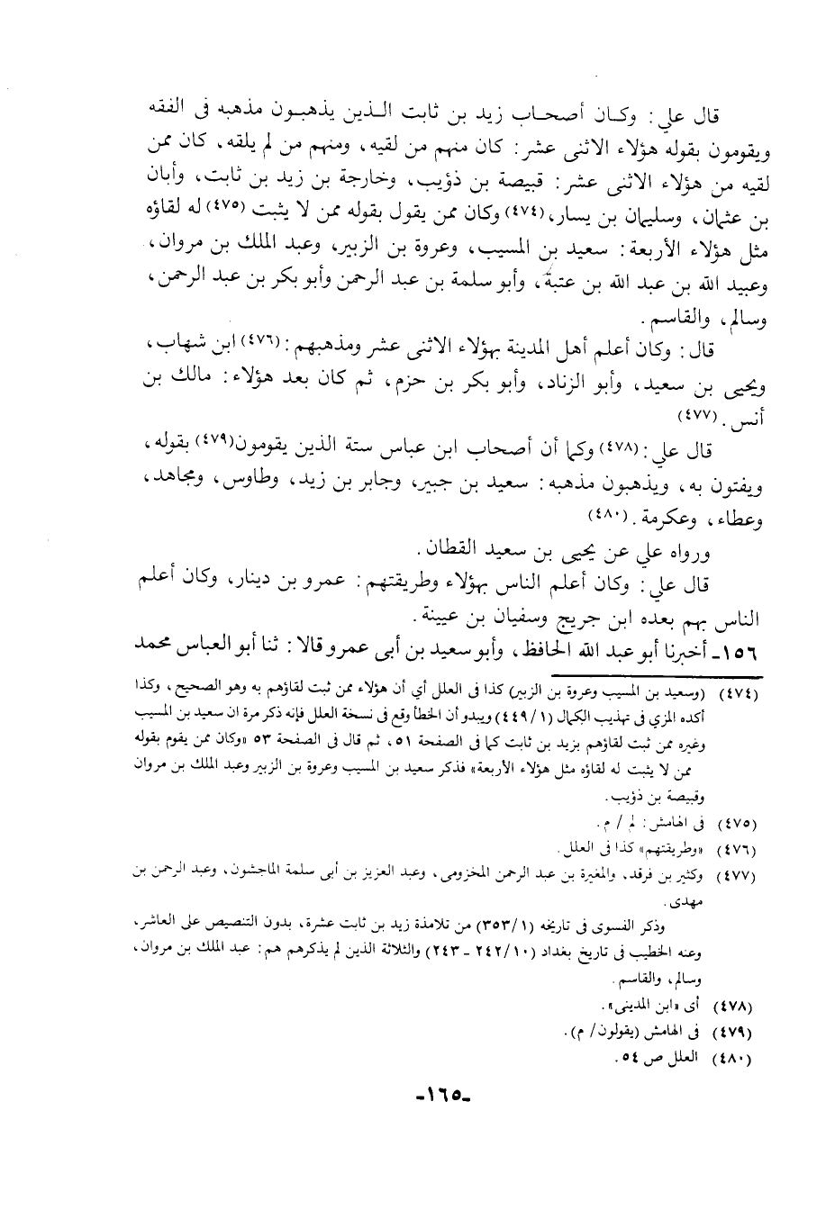 156 - أَخْبَرَنَا أَبُو عَبْدِ اللَّهِ الْحَافِظُ، وَأَبُو سَعِيدِ بْنُ أَبِي عَمْرٍو , قَالَا: ثنا أَبُو الْعَبَّاسِ مُحَمَّدُ -[166]- بْنُ يَعْقُوبَ , ثنا يَحْيَى بْنُ يُونُسَ الْفَارِسِيُّ، ثنا إِسْمَاعِيلُ بْنُ أَبِي أُوَيْسٍ، وَعِيسَى بْنُ مِينَا. ح وَأَخْبَرَنَا أَبُو الْحُسَيْنِ بْنُ الْفَضْلِ الْقَطَّانُ، أبنا عَبْدُ اللَّهِ بْنُ جَعْفَرٍ، ثنا يَعْقُوبُ بْنُ سُفْيَانَ، حَدَّثَنِي أَبُو مُحَمَّدٍ عَبْدُ اللَّهِ بْنُ مُحَمَّدٍ الْمُقْرِئُ، قَالُوا: ثنا عَبْدُ الرَّحْمَنِ بْنُ أَبِي الزِّنَادِ قَالَ: قَالَ أَبُو الزِّنَادِ: §أَدْرَكْتُ مِنْ فُقَهَاءِ أَهْلِ الْمَدِينَةِ وَعُلَمَائِهِمْ , مِمَّنْ يُرْضَى وَيُنْتَهَى إِلَى قَوْلِهِمْ , وَفِي رِوَايَةِ ابْنِ أَبِي أُوَيْسٍ , وَصَاحِبِهِ: أَنَّ أَبَاهُ قَالَ: كَانَ مِمَّنْ أَدْرَكْتُ مِنْ فُقَهَائِنَا الَّذِينَ يُنْتَهَى إِلَى قَوْلِهِمْ مِنْهُمْ سَعِيدُ بْنُ الْمُسَيِّبِ , وَعُرْوَةُ بْنُ الزُّبَيْرِ , وَالْقَاسِمُ بْنُ مُحَمَّدٍ , وَأَبُو بَكْرِ بْنُ عَبْدِ الرَّحْمَنِ يَعْنِي ابْنَ الْحَارِثِ بْنِ هِشَامٍ، وَخَارِجَةُ بْنُ زَيْدِ بْنِ ثَابِتٍ , وَعُبَيْدُ اللَّهِ بْنُ عَبْدِ اللَّهِ بْنِ عُتْبَةَ , وَسُلَيْمَانُ بْنُ يَسَارٍ , فِي مَشْيخَةٍ جُلَّةِ سِوَاهُمْ مِنْ نُظَرَائِهِمْ أَهْلُ فِقْهٍ وَفَضَلٍ