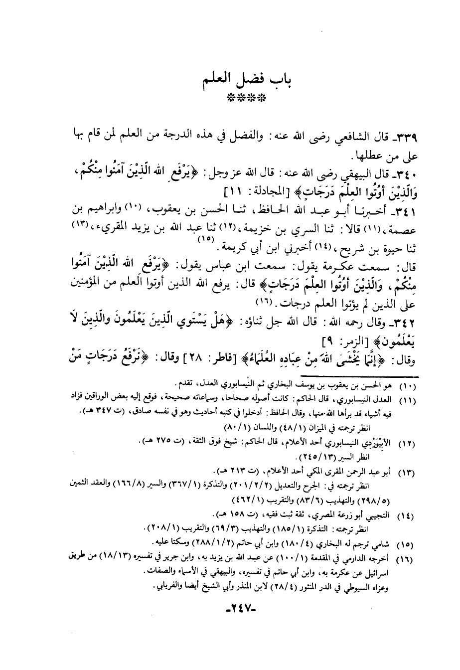 340 - قَالَ الْبَيْهَقِيُّ رَضِيَ اللَّهُ عَنْهُ: قَالَ اللَّهُ عَزَّ وَجَلَّ: {يَرْفَعِ اللَّهُ الَّذِينَ آمَنُوا مِنْكُمْ وَالَّذِينَ أُوتُوا الْعِلْمَ دَرَجَاتٍ} [المجادلة: 11]