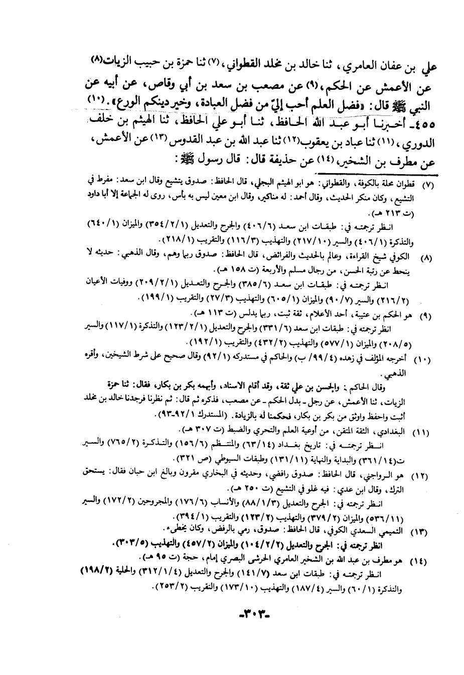 455 - أَخْبَرَنَا أَبُو عَبْدِ اللَّهِ الْحَافِظُ، ثنا أَبُو عَلِيٍّ الْحَافِظُ، ثنا الْهَيْثَمُ بْنُ خَلَفٍ الدُّورِيُّ، ثنا عَبَّادُ بْنُ يَعْقُوبَ، ثنا عَبْدُ اللَّهِ بْنُ عَبْدِ الْقُدُّوسِ، عَنِ الْأَعْمَشِ، عَنْ مُطَرِّفِ بْنِ الشِّخِّيرِ، عَنْ حُذَيْفَةَ، قَالَ قَالَ رَسُولُ اللَّهِ صَلَّى اللهُ عَلَيْهِ وَسَلَّمَ: §«فَضْلُ الْعِلْمِ خَيْرُ مِنْ فَضْلِ الْعِبَادَةِ وَخَيْرُ دِينِكُمُ الْوَرَعُ» ،