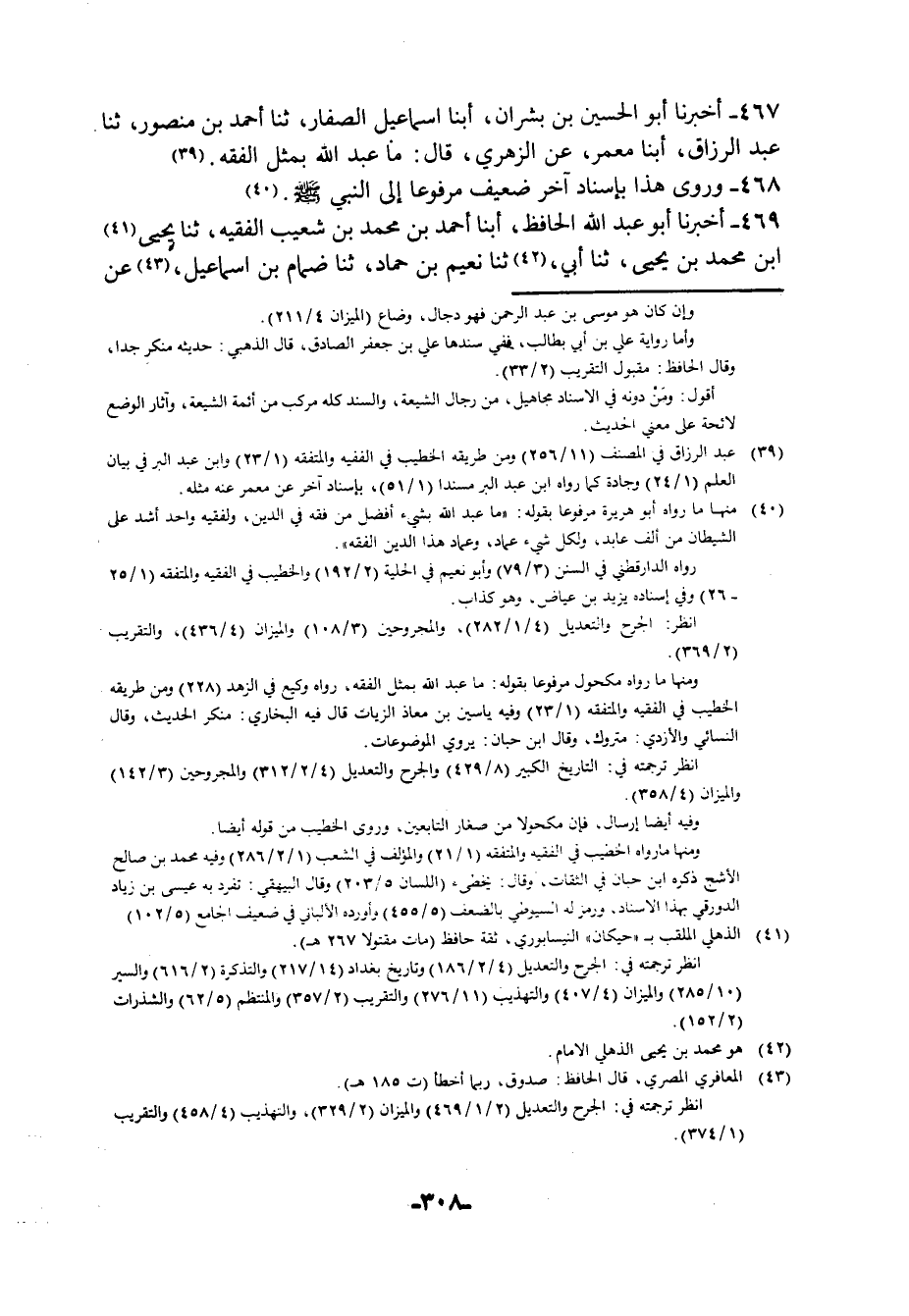 469 - أَخْبَرَنَا أَبُو عَبْدِ اللَّهِ الْحَافِظُ، أبنا أَحْمَدُ بْنُ مُحَمَّدِ بْنِ شُعَيْبٍ الْفَقِيهُ، ثنا يَحْيَى بْنُ مُحَمَّدِ بْنِ يَحْيَى، ثنا أَبِي، ثنا نُعَيْمُ بْنُ حَمَّادٍ، ثنا ضِمَامُ بْنُ إِسْمَاعِيلَ، عَنْ عَقِيلِ بْنِ خَالِدٍ، قَالَ: سُئِلَ الزُّهْرِيُّ: الْعِلْمُ أَفْضَلُ أَوِ الْعَمَلُ بِهِ؟، فَقَالَ: §الْعِلْمُ أَفْضَلُ مِنَ الْعَمَلِ لِمَنْ جَهِلَ، وَالْعَمَلُ أَفْضَلُ مِنَ الْعِلْمِ لِمَنْ عَلِمَ