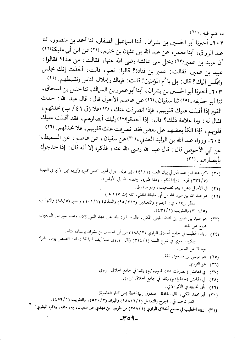 604 - وَرَوَاهُ عَبْدُ اللَّهِ بْنُ الْوَلِيدِ الْعَدَنِيُّ عَنْ سُفْيَانَ، عَنْ عَاصِمٍ، عَنِ السُّمَيْطِ، عَنْ أَبِي الْأَحْوَصِ، قَالَ: قَالَ عَبْدُ اللَّهِ رَضِيَ اللَّهُ عَنْهُ، فَذَكَرَهُ إِلَّا أَنَّهُ قَالَ: إِذَا حَدَجُوكَ بِأَبْصَارِهِمْ