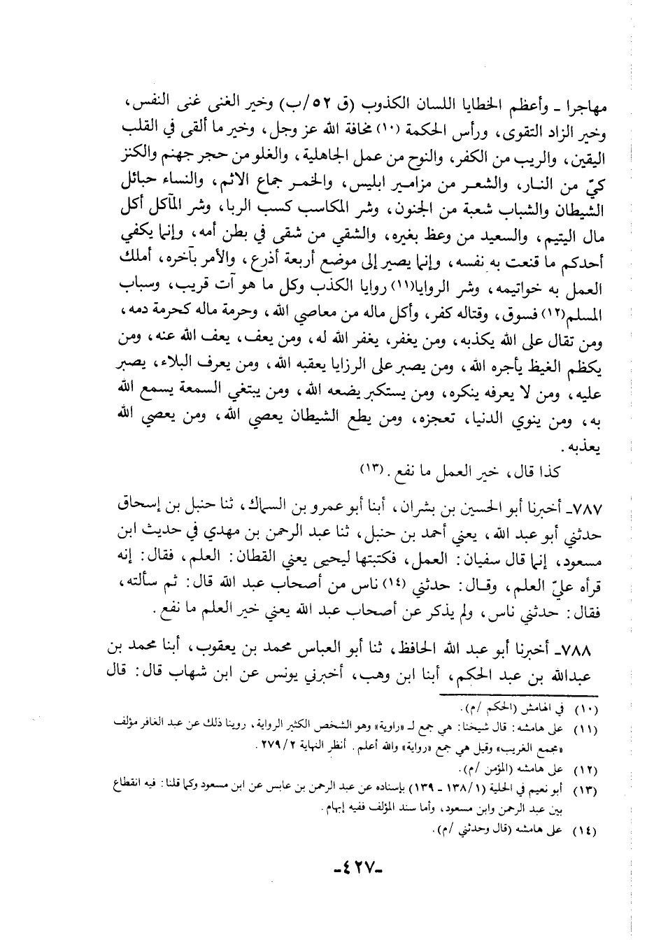 788 - أَخْبَرَنَا أَبُو عَبْدِ اللَّهِ الْحَافِظُ، ثنا أَبُو الْعَبَّاسِ مُحَمَّدُ بْنُ يَعْقُوبَ أبنا مُحَمَّدُ بْنُ عَبْدِ اللَّهِ بْنِ عَبْدِ الْحَكَمِ، أبنا ابْنُ وَهْبٍ، أَخْبَرَنِي يُونُسُ، عَنِ ابْنِ شِهَابٍ، قَالَ: قَالَ -[428]- رَجُلٌ لِلُقْمَانَ: بِمَ أَدْرَكْتَ هَذَا؟ قَالَ: §«بِصِدْقِ الْحَدِيثِ وَأَدَاءِ الْأَمَانَةِ وَتَرَكِ مَا لَا يُعْنِينِي»