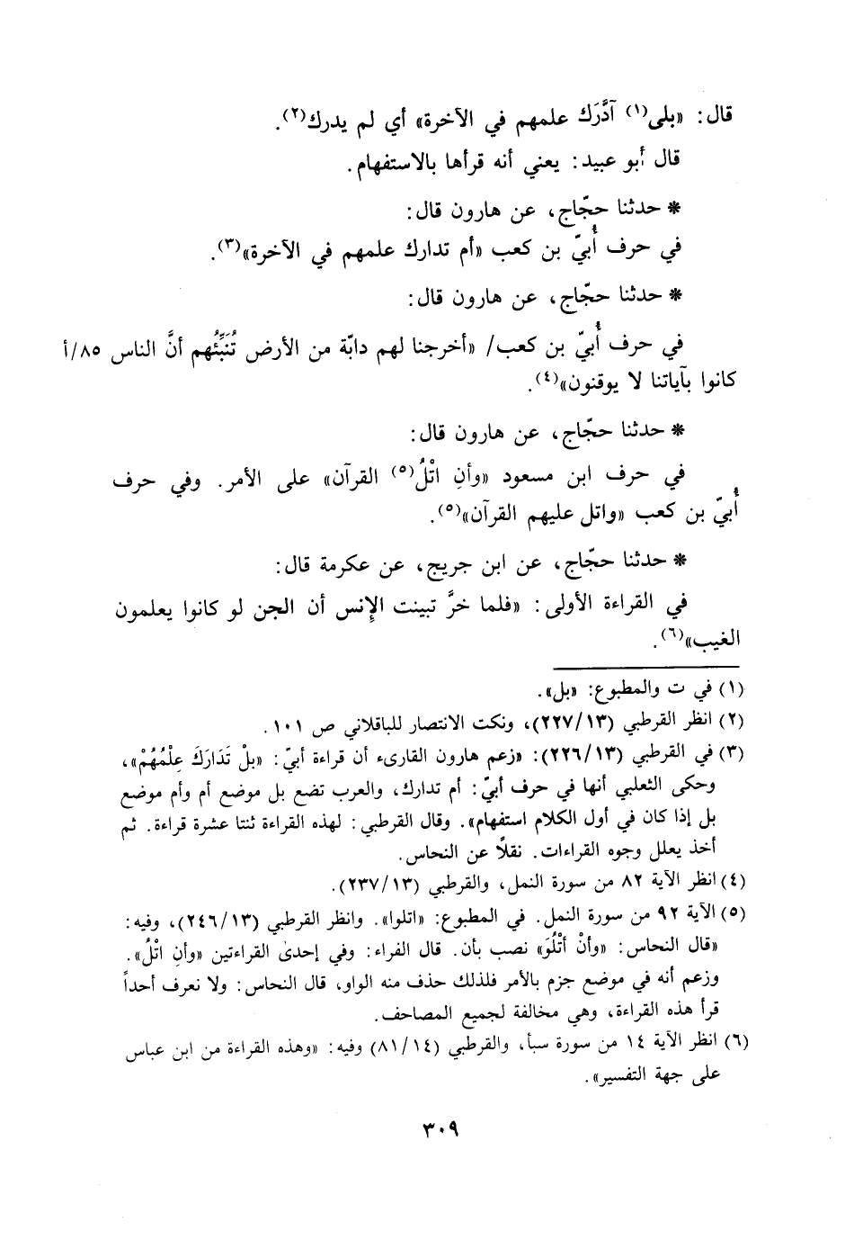 حَدَّثَنَا حَجَّاجٌ، عَنْ هَارُونَ، قَالَ: §فِي حَرْفِ أُبَيِّ بْنِ كَعْبٍ (أَمْ تَدَارَكَ عِلْمُهُمْ فِي الْآخِرَةِ)