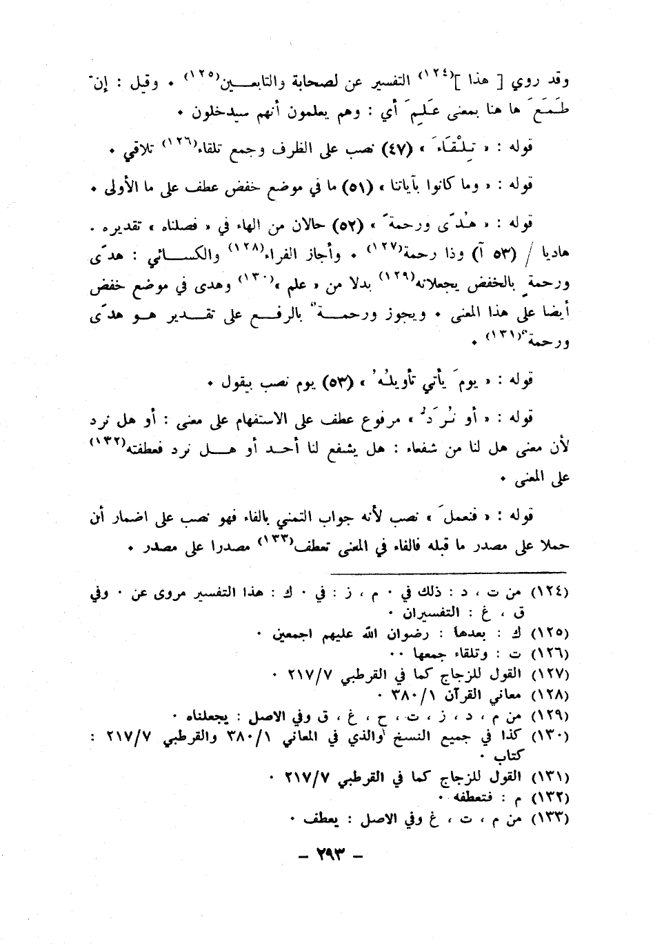 قَوْله {هدى وَرَحْمَة} حالان من الْهَاء فِي فصلناه تَقْدِيره هاديا وَذَا رَحْمَة وَأَجَازَ الْفراء وَالْكسَائِيّ هدى وَرَحْمَة بالخفض يجعلانه بَدَلا من علم وَهدى فِي مَوضِع خفض أَيْضا على هَذَا الْمَعْنى وَيجوز وَرَحْمَة بِالرَّفْع على تَقْدِير هُوَ هدى وَرَحْمَة