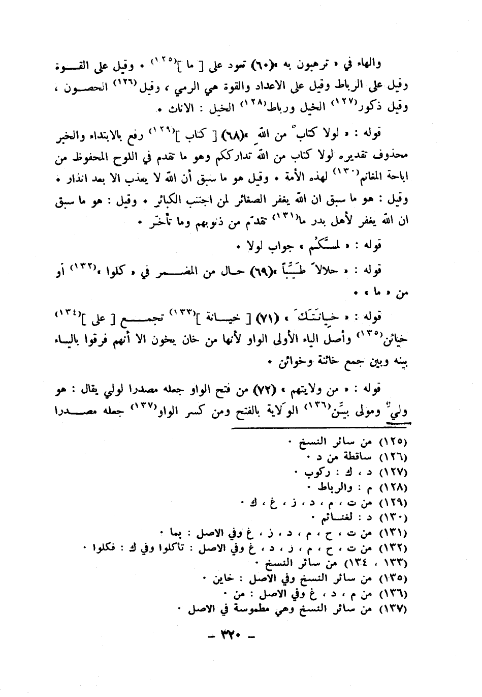 قَوْله {لَوْلَا كتاب من الله} كتاب رفع بِالِابْتِدَاءِ وَالْخَبَر مَحْذُوف تَقْدِيره لَوْلَا كتاب من الله تدارككم وَهُوَ مَا تقدم فِي اللَّوْح الْمَحْفُوظ من اباحة الْمَغَانِم لهَذِهِ الآمة وَقيل هُوَ مَا سبق أَن الله لَا يعذب إِلَّا بعد إنذار وَقيل هُوَ مَا سبق أَن الله يغْفر الصَّغَائِر لمن اجْتنب الْكَبَائِر وَقيل هُوَ مَا سبق أَن الله يغْفر لأهل بدر مَا تقدم من ذنوبهم وَمَا تَأَخّر