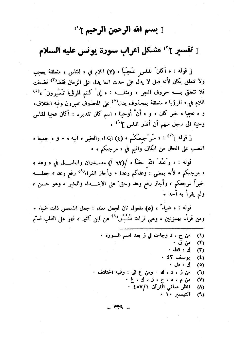 تَفْسِير مُشكل إِعْرَاب سُورَة يُونُس عَلَيْهِ السَّلَام
