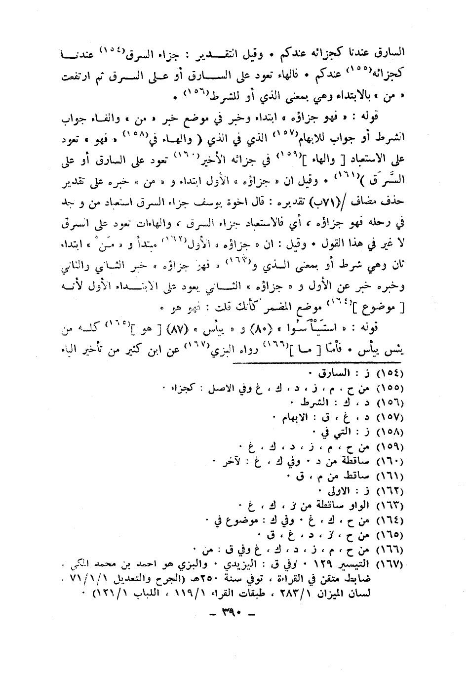 السَّارِق عندنَا كجزائه عنْدكُمْ وَقيل التَّقْدِير جَزَاء السرق عندنَا كجزائه عنْدكُمْ فالهاء تعود على السَّارِق أَو على السرق ثمَّ ارْتَفَعت من بِالِابْتِدَاءِ وَهِي بِمَعْنى الَّذِي أَو للشّرط