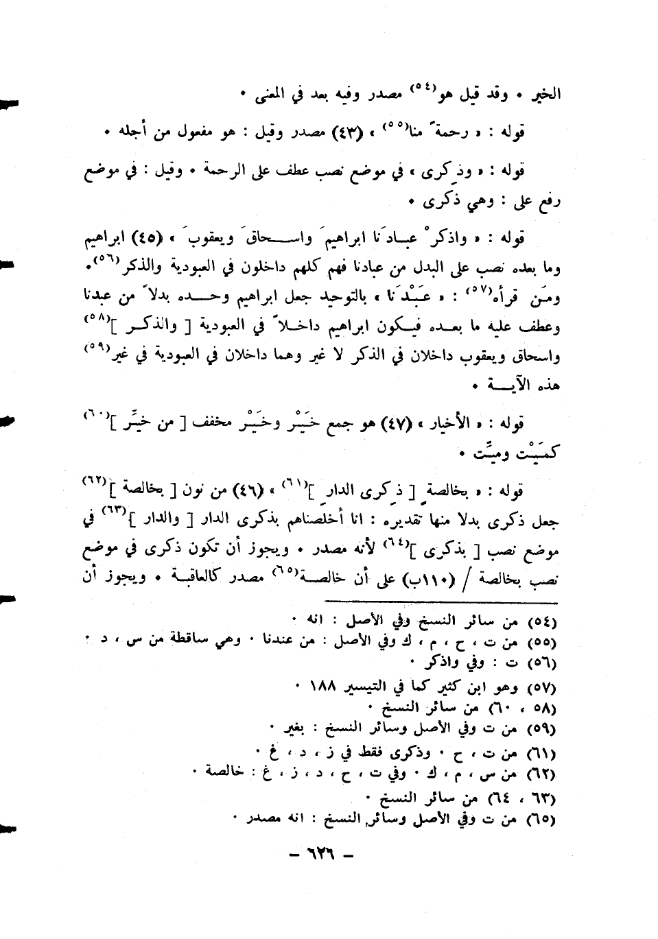 قَوْله {بخالصة ذكرى الدَّار} من نون بخالصة جعل ذكرى بَدَلا مِنْهَا تَقْدِيره انا اخلصناهم بذكرى الدَّار وَالدَّار فِي مَوضِع نصب بذكرى لِأَنَّهُ مصدر وَيجوز أَن تكون ذكرى فِي مَوضِع نصب بخالصة على أَن خَالِصَة مصدر كالعاقبة وَيجوز أَن نصب بخالصة على أَن خَالِصَة مصدر كالعاقبة وَيجوز أَن