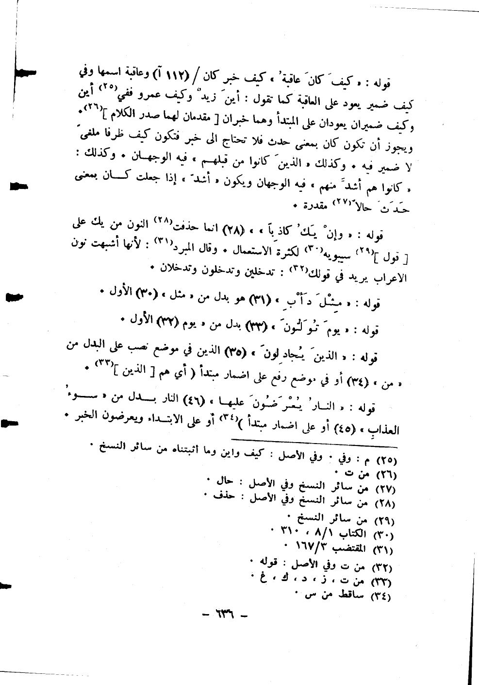 قَوْله كَيفَ كَانَ عَاقِبَة كَيفَ خبر كَانَ وعاقبة اسْمهَا وَفِي كَيفَ ضمير يعود على الْعَاقِبَة كَمَا تَقول أَيْن زيد وَكَيف عَمْرو فَفِي أَيْن وَكَيف ضميران يعودان على المبتداء وهما خبران مقدمان لَهما صدر الْكَلَام وَيجوز أَن تكون كَانَ بِمَعْنى حدث فَلَا تحْتَاج الى خبر فَتكون كَيفَ ظرفا ملغى لَا ضمير فِيهِ وَكَذَلِكَ الَّذين كَانُوا من قبلهم فِيهِ الْوَجْهَانِ وَكَذَلِكَ كَانُوا هم أَشد مِنْهُم فِي الْوَجْهَانِ وَيكون أَشد إِذا جعلت كَانَ بِمَعْنى حدث حَالا مقدرَة
