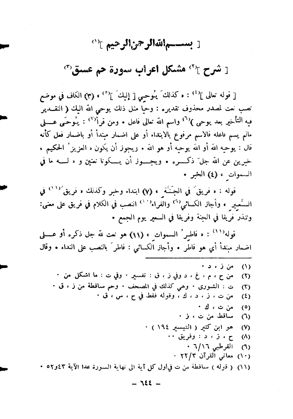 شرح مُشكل اعراب سُورَة حم عسق