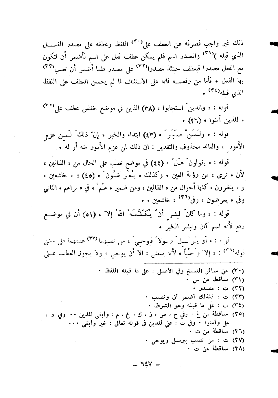 ذَلِك غير وَاجِب فَصَرفهُ عَن الْعَطف على اللَّفْظ وَعطفه على مصدر الْفِعْل الَّذِي قبله والمصدر اسْم فَلم يُمكن عطف فعل على اسْم فأضمر أَن تكون مَعَ الْفِعْل مصدرا فيعطف حِينَئِذٍ مصدرا على مصدر فَلَمَّا أضمر أَن نصب بهَا الْفِعْل فَأَما من رَفعه فانه على الِاسْتِئْنَاف لما لم يحسن الْعَطف على اللَّفْظ الَّذِي قبله