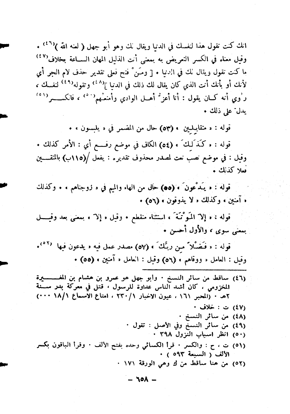 انك كنت تَقول هَذَا لنَفسك فِي الدُّنْيَا وَيُقَال لَك وَهُوَ أَبُو جهل لَعنه الله وَقيل مَعْنَاهُ فِي الْكسر التَّعْرِيض بِهِ بِمَعْنى أَنْت الذَّلِيل المهان السَّاعَة بِخِلَاف مَا كنت تَقول وَيُقَال لَك فِي الدُّنْيَا وَمن فتح فعلى تَقْدِير حذف لَام الْجَرّ أَي لِأَنَّك أَو بأنك أَنْت الَّذِي كَانَ يُقَال لَك ذَلِك فِي الدُّنْيَا وتقوله لنَفسك رُوِيَ أَنه كَانَ يَقُول أَنا أعز أهل الْوَادي وأمنعهم فالكسر يدل على ذَلِك