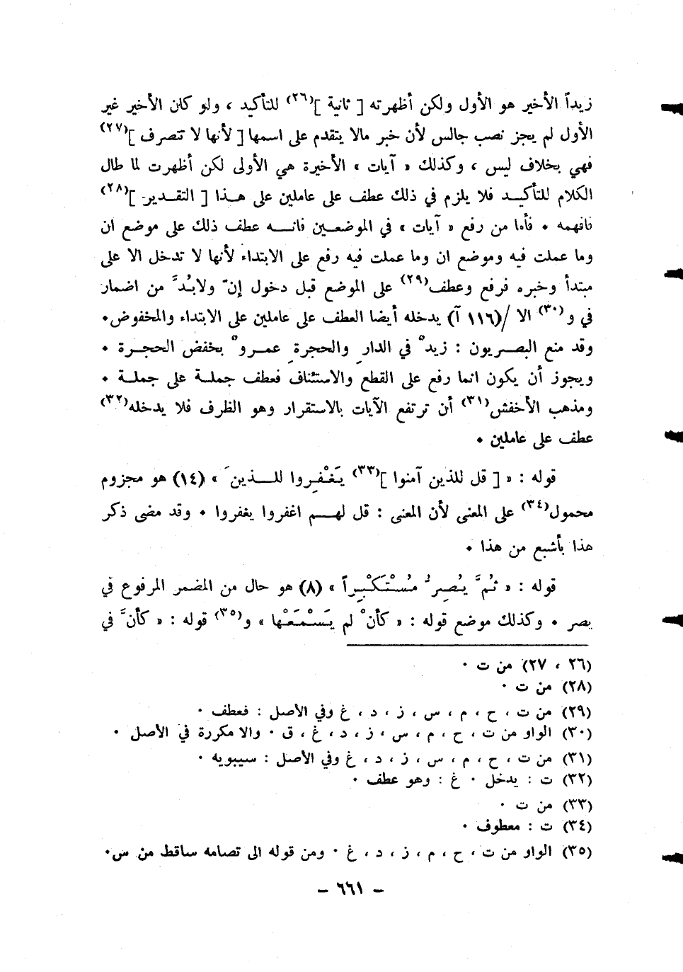 زيدا الْأَخير هُوَ الأول وَلَكِن أظهرته ثَانِيَة للتَّأْكِيد وَلَو كَانَ الْأَخير غير الأول لم يجز نصب جَالس لِأَن خبر مَالا يتَقَدَّم على اسْمهَا لِأَنَّهَا لَا تتصرف فَهِيَ بِخِلَاف لَيْسَ وَكَذَلِكَ آيَات الْأَخِيرَة هِيَ الأولى لَكِن أظهرت لما طَال الْكَلَام للتَّأْكِيد فَلَا يلْزم فِي ذَلِك عطف على عاملين على هَذَا التَّقْدِير فافهمه فَأَما من رفع آيَات فِي الْمَوْضِعَيْنِ فانه عطف ذَلِك على مَوضِع ان وَمَا عملت فِيهِ وَمَوْضِع ان وَمَا عملت فِيهِ رفع على الِابْتِدَاء لِأَنَّهَا لَا تدخل الا على مُبْتَدأ وَخَبره فَرفع وَعطف على الْموضع قبل دُخُول إِن ولابد من اضمار فِي والا يدْخلهُ أَيْضا الْعَطف على عاملين على الِابْتِدَاء والمخفوض وَقد منع البصريون زيد فِي الدَّار والحجرة عَمْرو بخفض الْحُجْرَة وَيجوز أَن يكون انما رفع على الْقطع والاستئناف فعطف جملَة على جملَة وَمذهب الْأَخْفَش أَن ترْتَفع الْآيَات بالاستقرار وَهُوَ الظّرْف فَلَا يدْخلهُ عطف على عاملين