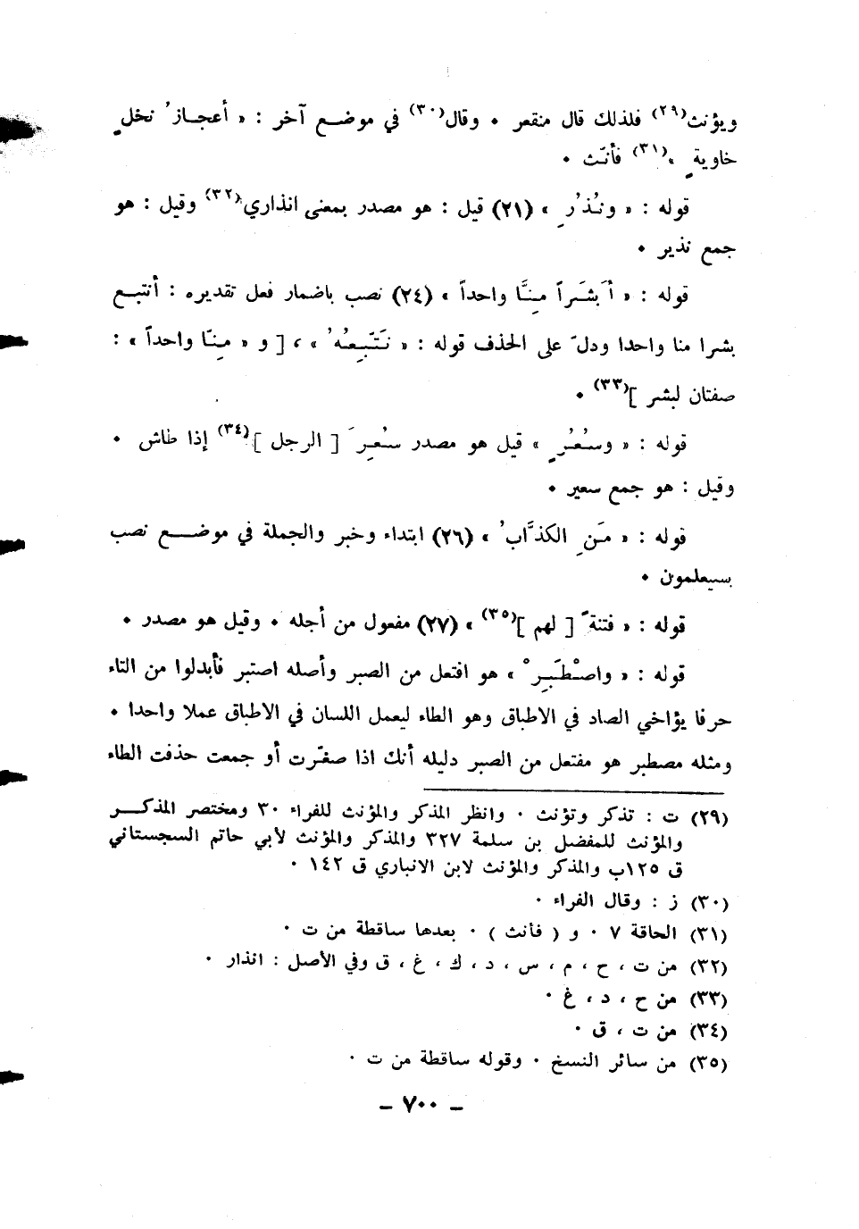 قَوْله وَنذر قيل هُوَ مصدر بِمَعْنى انذاري وَقيل هُوَ جمع نَذِير