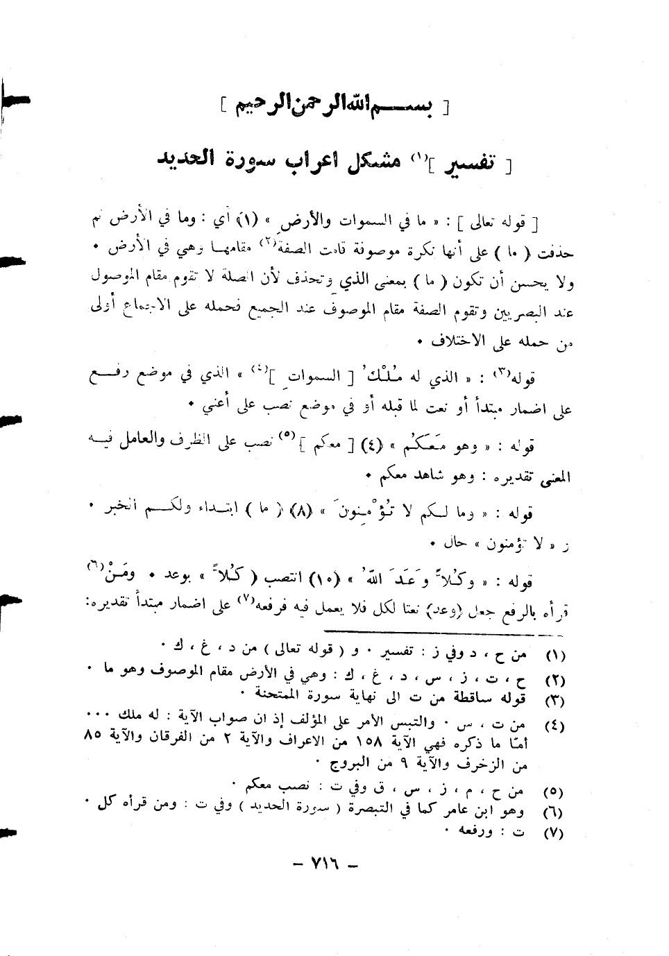 تَفْسِير مُشكل اعراب سُورَة الْحَدِيد