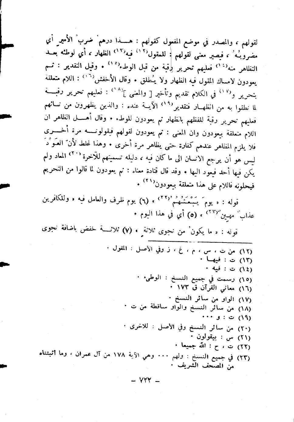 لقَولهم والمصدر فِي مَوضِع الْمَفْعُول كَقَوْلِهِم هَذَا دِرْهَم ضرب الْأَمِير أَي مضروبه فيصيرمعنى لقَولهم للمقول فِيهِ الظِّهَار أَي لوطئه بعد التظاهر مِنْهُ فَعَلَيْهِم تَحْرِير رَقَبَة من قبل الْوَطْء وَقيل التَّقْدِير ثمَّ يعودون لامساك الْمَقُول فِيهِ الظِّهَار وَلَا يُطلق وَقَالَ الْأَخْفَش اللَّام مُتَعَلّقه بتحرير وَفِي الْكَلَام تَقْدِيم وَتَأْخِير وَالْمعْنَى فَعَلَيْهِم تَحْرِير رَقَبَة لما نطقوا بِهِ من الظِّهَار فتقدير الاية عِنْده وَالَّذين يظهرون من نِسَائِهِم فَعَلَيْهِم تَحْرِير رَقَبَة للفظهم بالظهار ثمَّ يعودون للْوَطْء وَقَالَ أهل الظَّاهِر أَن اللَّام مُتَعَلقَة بيعودون وان الْمَعْنى ثمَّ يعودون لقَولهم فيقولونه مرّة أُخْرَى فَلَا يلْزم الْمظَاهر عِنْدهم كَفَّارَة حَتَّى يظاهر مرّة أُخْرَى وَهَذَا غلط لِأَن الْعود لَيْسَ هُوَ أَن يرجع الانسان الى مَا كَانَ فِيهِ دَلِيله تسميتهم للاخرة الْمعَاد وَلم يكن فِيهَا أحد فَيَعُود اليها وَقد قَالَ قَتَادَة مَعْنَاهُ ثمَّ يعودون لما قَالُوا من التَّحْرِيم فيحلونه فَاللَّام على هَذَا مُتَعَلقَة بيعودون