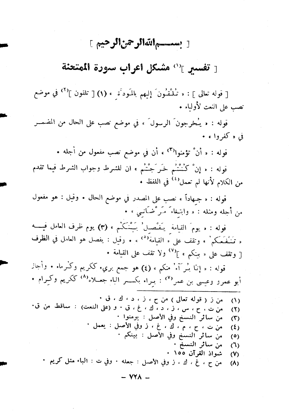 تَفْسِير مُشكل اعراب سُورَة الممتحنة