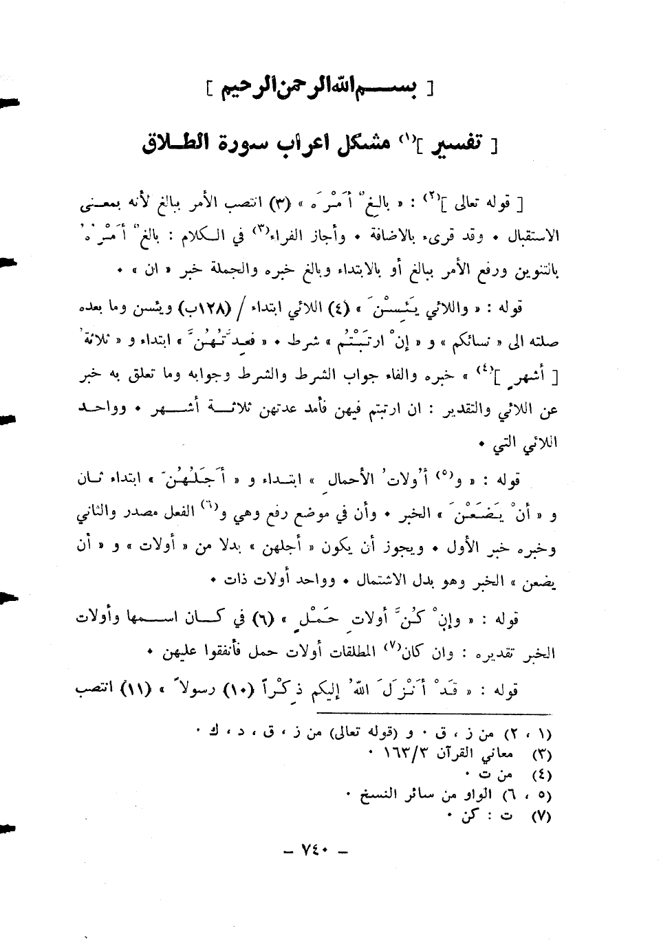 تَفْسِير مُشكل اعراب سُورَة الطَّلَاق