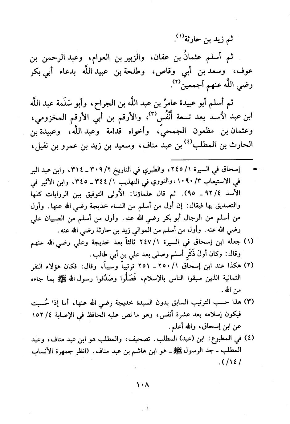 (¬3) هذا حسب الترتيب السابق بدون السيدة خديجة رضي الله عنها، أما إذا حسبت فيكون إسلامه بعد عشرة أنفس، وهو ما نص عليه الحافظ في الإصابة 4/ 152 عن ابن إسحاق، والله أعلم.