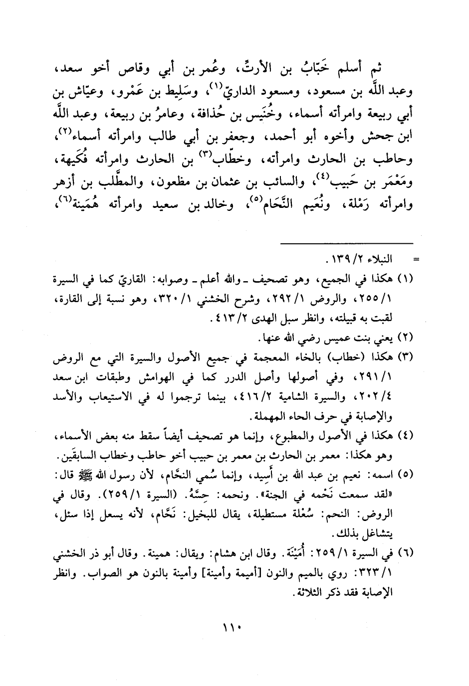 (¬3) هكذا (خطاب) بالخاء المعجمة في جميع الأصول والسيرة التي مع الروض 1/ 291، وفي أصولها وأصل الدرر كما في الهوامش وطبقات ابن سعد 4/ 202، والسيرة الشامية 2/ 416، بينما ترجموا له في الاستيعاب والأسد والإصابة في حرف الحاء المهملة.