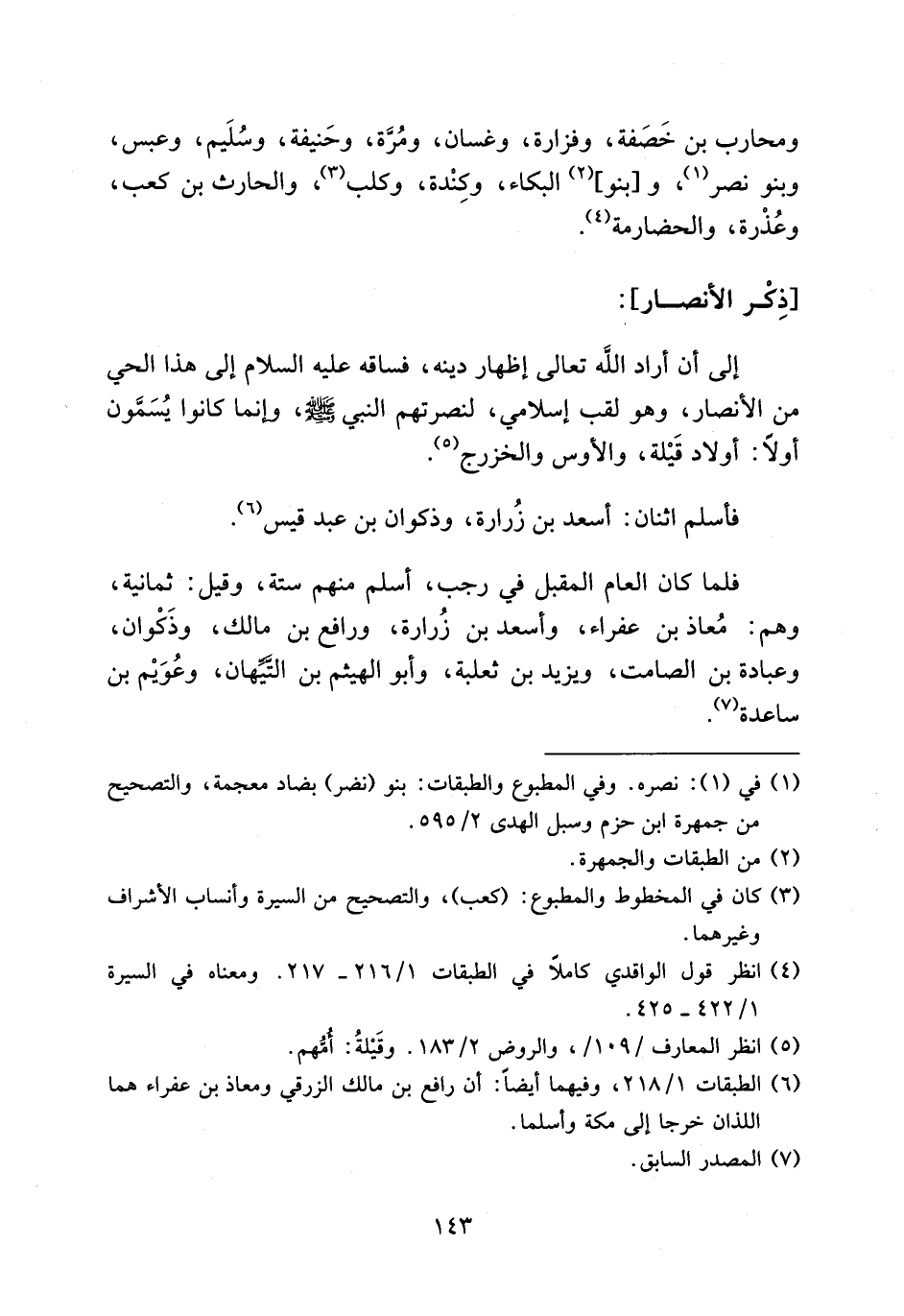 (¬6) الطبقات 1/ 218، وفيهما أيضا: أن رافع بن مالك الزرقي ومعاذ بن عفراء هما اللذان خرجا إلى مكة وأسلما.