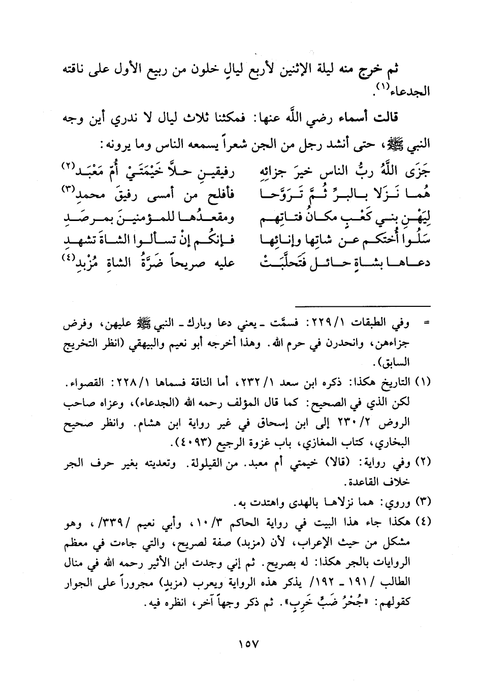 جزى الله ربّ الناس خير جزائه … رفيقين حلاّ خيمتي أمّ معبد (¬2)