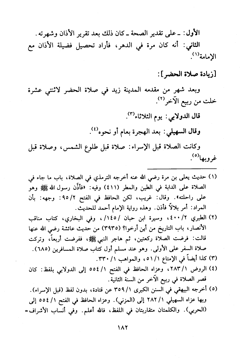 (¬4) الروض 1/ 283، وعزاه الحافظ في الفتح 1/ 554 إلى الدولابي بلفظ: كان قصر الصلاة في ربيع الآخر من السنة الثانية.