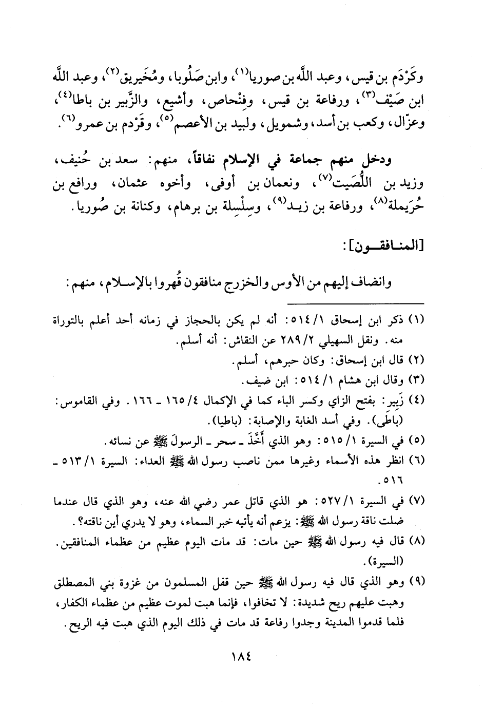 ودخل منهم جماعة في الإسلام نفاقا، منهم: سعد بن حنيف، وزيد بن اللّصيت (¬7)، ونعمان بن أوفى، وأخوه عثمان، ورافع بن حريملة (¬8)، ورفاعة بن زيد (¬9)، وسلسلة بن برهام، وكنانة بن صوريا.