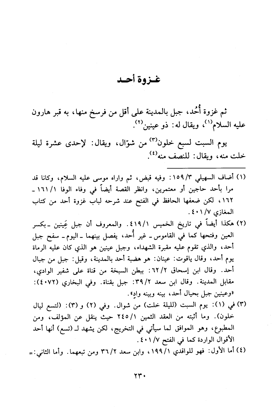ثم غزوة أحد، جبل بالمدينة على أقل من فرسخ منها، به قبر هارون عليه السلام (¬1)، ويقال له: ذو عينين (¬2).