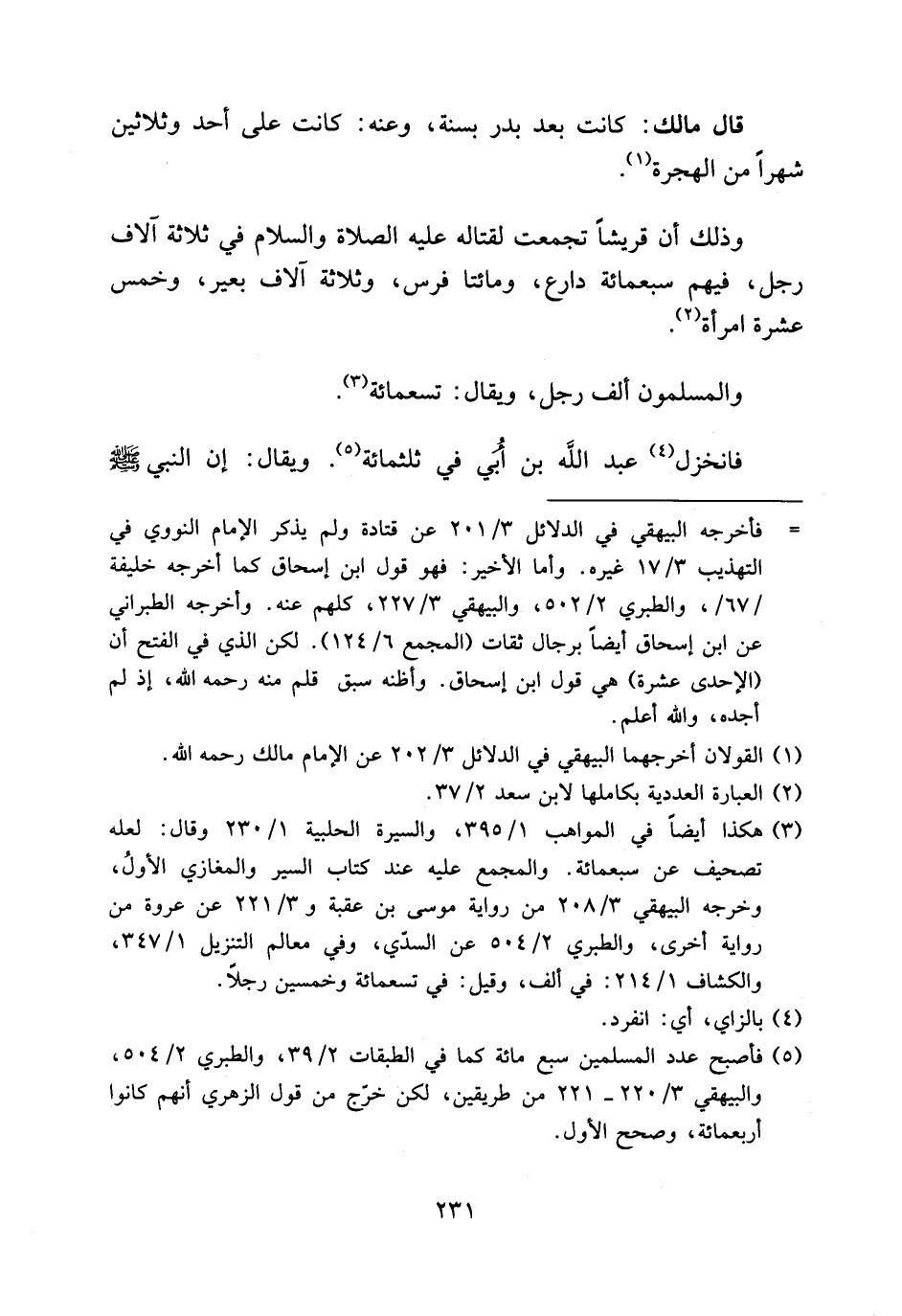 (¬3) هكذا أيضا في المواهب 1/ 395، والسيرة الحلبية 1/ 230 وقال: لعله تصحيف عن سبعمائة. والمجمع عليه عند كتاب السير والمغازي الأول، وخرجه البيهقي 3/ 208 من رواية موسى بن عقبة و 3/ 221 عن عروة من رواية أخرى، والطبري 2/ 504 عن السدّي، وفي معالم التنزيل 1/ 347، والكشاف 1/ 214: في ألف، وقيل: في تسعمائة وخمسين رجلا.