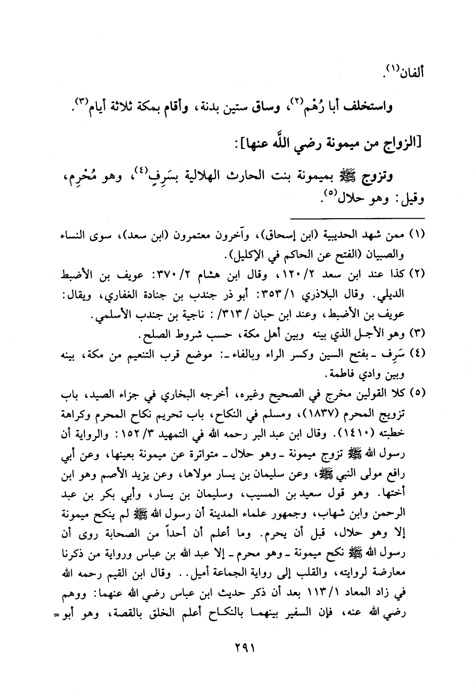 وتزوج صلى الله عليه وسلم بميمونة بنت الحارث الهلالية بسرف (¬4)، وهو محرم، وقيل: وهو حلال (¬5).