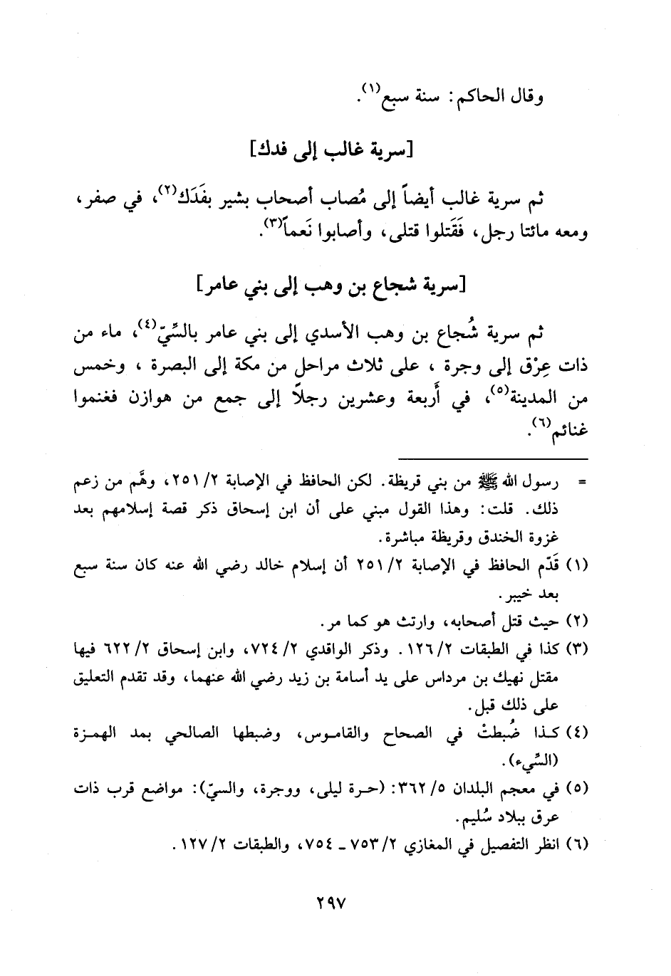 (¬6) انظر التفصيل في المغازي 2/ 753 - 754، والطبقات 2/ 127.