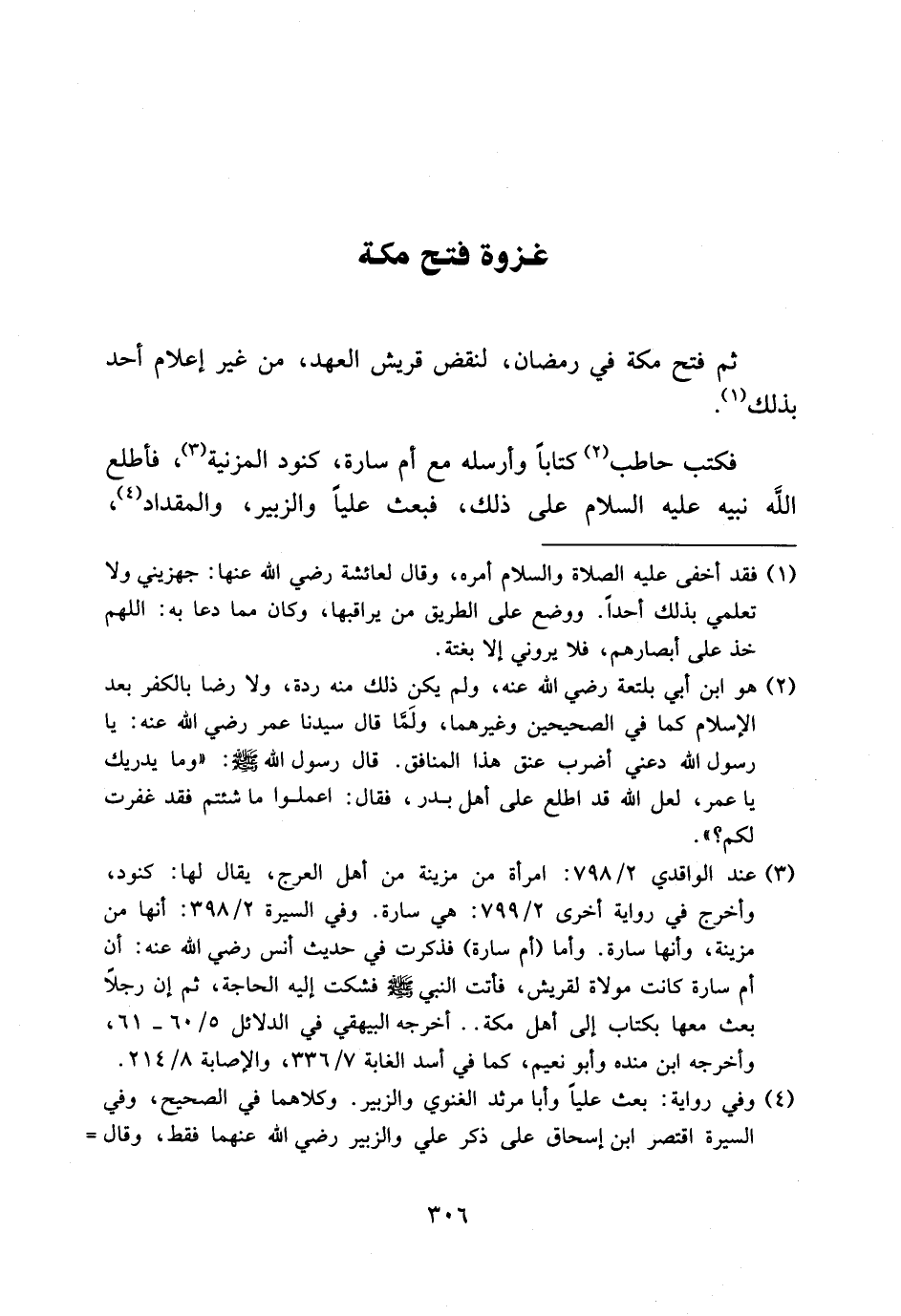 (¬3) عند الواقدي 2/ 798: امرأة من مزينة من أهل العرج، يقال لها: كنود، وأخرج في رواية أخرى 2/ 799: هي سارة. وفي السيرة 2/ 398: أنها من مزينة، وأنها سارة. وأما (أم سارة) فذكرت في حديث أنس رضي الله عنه: أن أم سارة كانت مولاة لقريش، فأتت النبي صلى الله عليه وسلم فشكت إليه الحاجة، ثم إن رجلا بعث معها بكتاب إلى أهل مكة. . أخرجه البيهقي في الدلائل 5/ 60 - 61، وأخرجه ابن منده وأبو نعيم، كما في أسد الغابة 7/ 336، والإصابة 8/ 214.