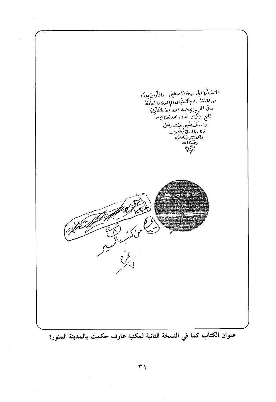 عنوان الكتاب كما في النسخة الثانية لمكتبة عارف حكمت بالمدينة المنورة