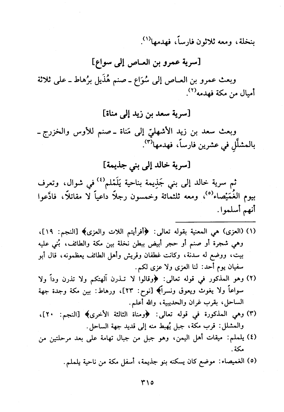 وبعث سعد بن زيد الأشهليّ إلى مناة-صنم للأوس والخزرج- بالمشلّل في عشرين فارسا، فهدمها (¬3).