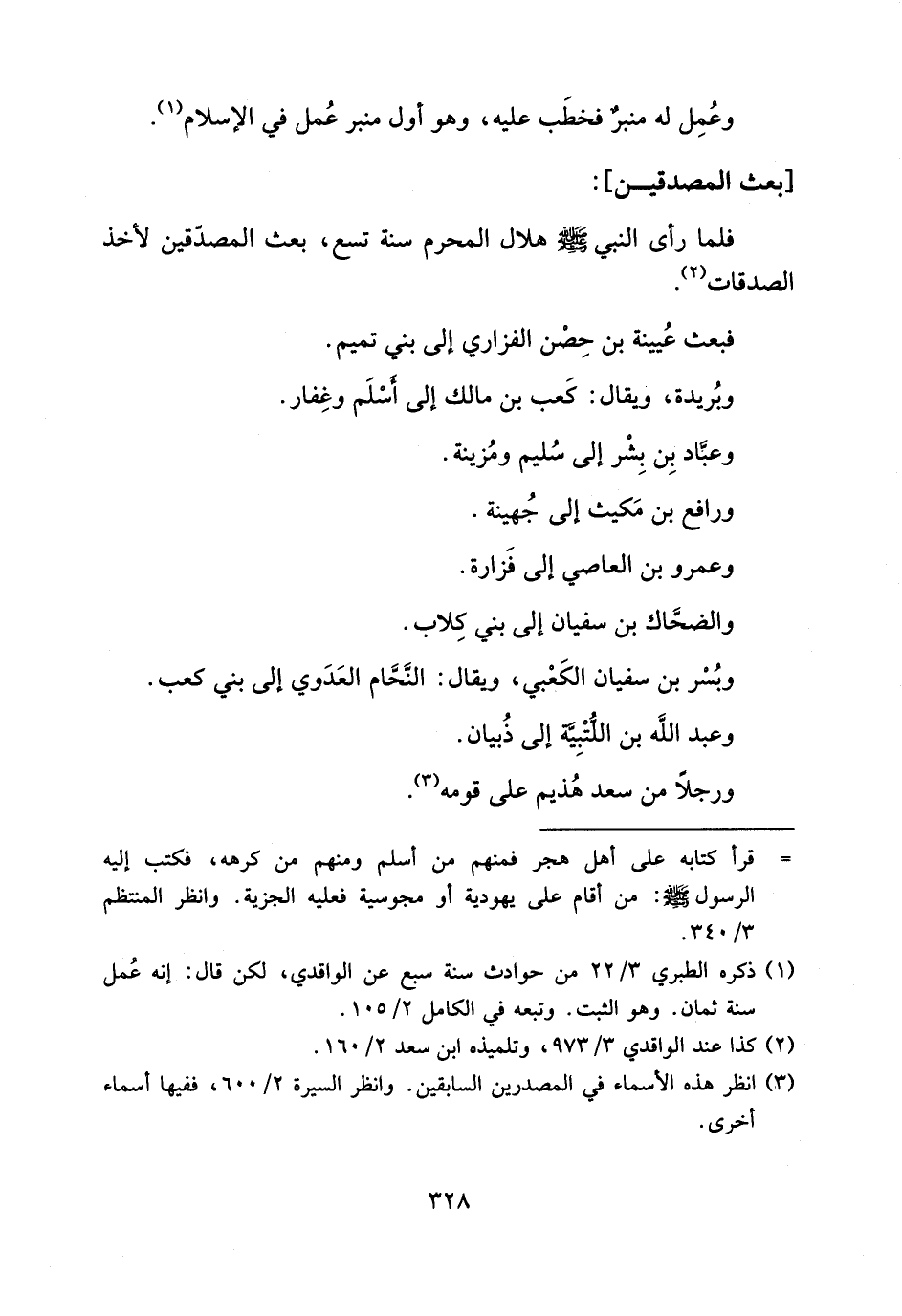 فلما رأى النبي صلى الله عليه وسلم هلال المحرم سنة تسع، بعث المصدّقين لأخذ الصدقات (¬2).