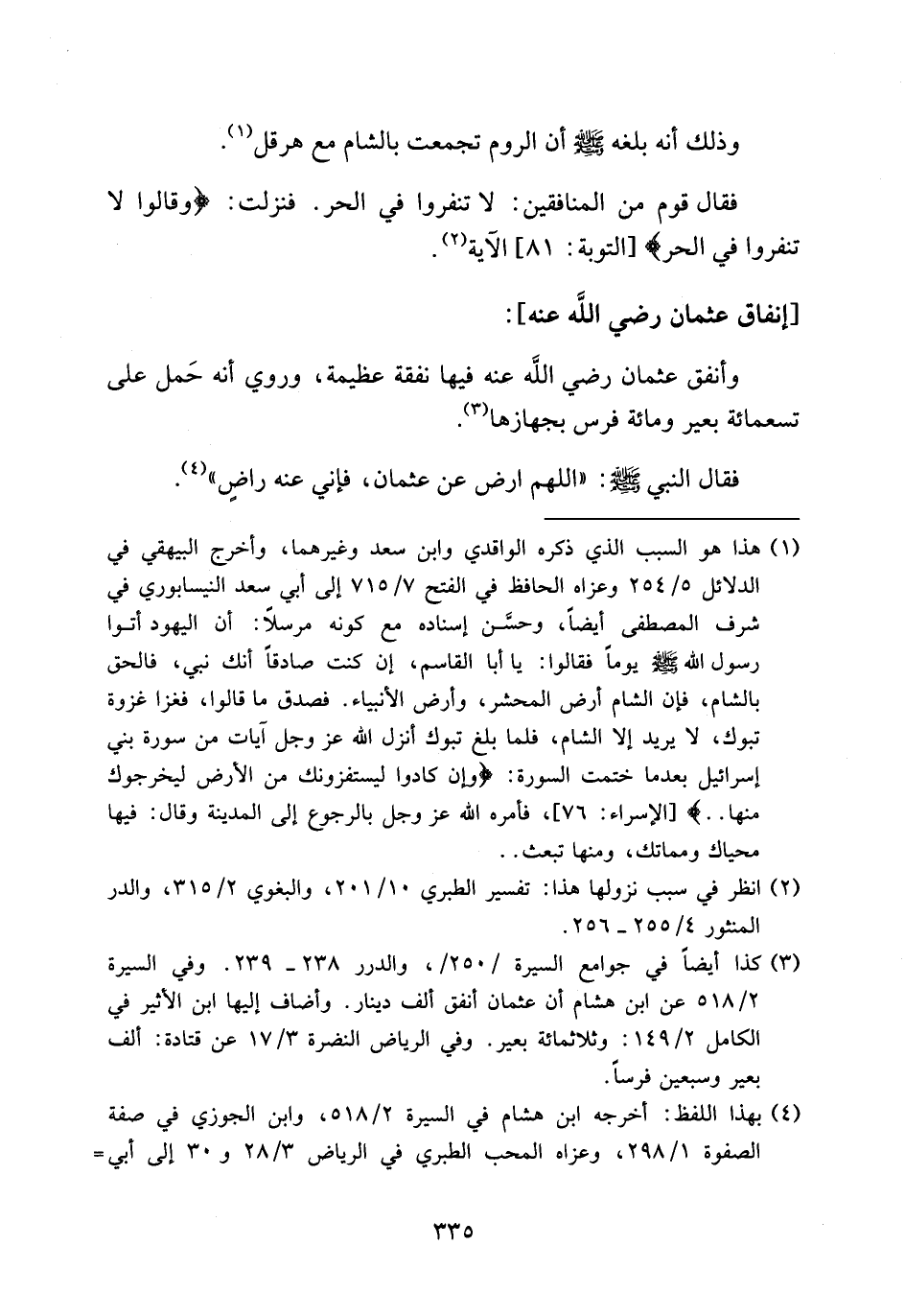 وأنفق عثمان رضي الله عنه فيها نفقة عظيمة، وروي أنه حمل على تسعمائة بعير ومائة فرس بجهازها (¬3).