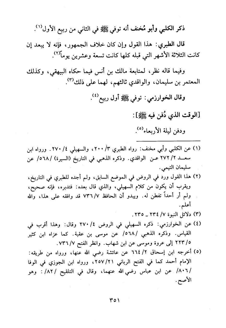 وقال الخوارزمي: توفي صلى الله عليه وسلم أول ربيع (¬4).