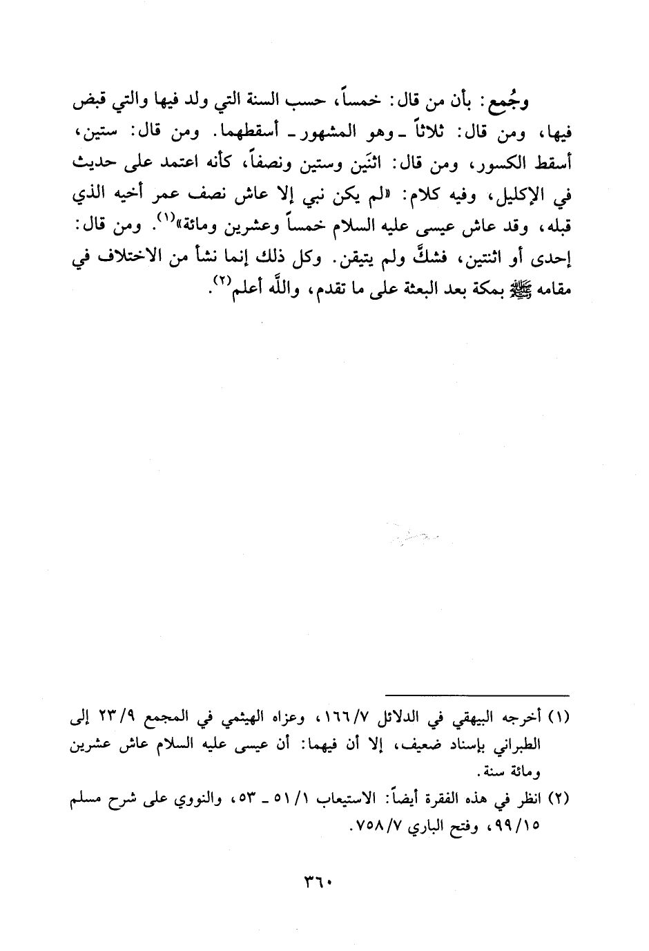 (¬1) أخرجه البيهقي في الدلائل 7/ 166، وعزاه الهيثمي في المجمع 9/ 23 إلى الطبراني بإسناد ضعيف، إلا أن فيهما: أن عيسى عليه السلام عاش عشرين ومائة سنة.