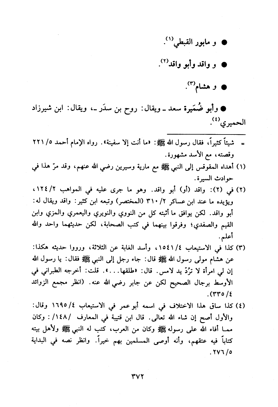 = شيئا كثيرا، فقال رسول الله صلى الله عليه وسلم: «ما أنت إلا سفينة». رواه الإمام أحمد 5/ 221 وقصته، مع الأسد مشهورة.