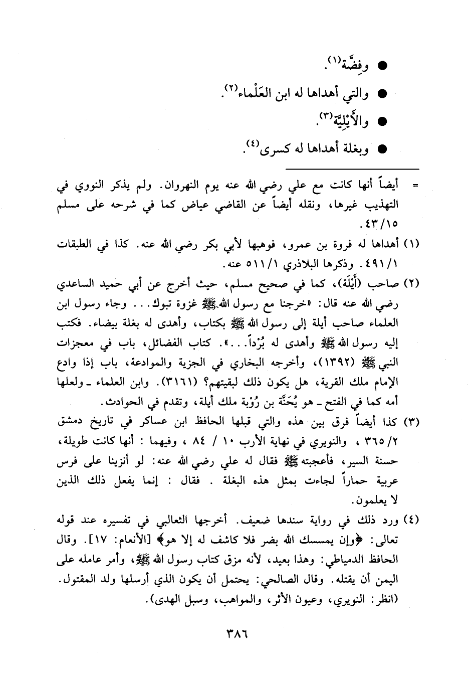 (¬2) صاحب (أيلة)، كما في صحيح مسلم، حيث أخرج عن أبي حميد الساعدي رضي الله عنه قال: «خرجنا مع رسول الله صلى الله عليه وسلم غزوة تبوك. . . وجاء رسول ابن العلماء صاحب أيلة إلى رسول الله صلى الله عليه وسلم بكتاب، وأهدى له بغلة بيضاء. فكتب إليه رسول الله صلى الله عليه وسلم وأهدى له بردا. . .». كتاب الفضائل، باب في معجزات النبي صلى الله عليه وسلم (1392)، وأخرجه البخاري في الجزية والموادعة، باب إذا وادع الإمام ملك القرية، هل يكون ذلك لبقيتهم؟ (3161). وابن العلماء-ولعلها أمه كما في الفتح-هو يحنّة بن روبة ملك أيلة، وتقدم في الحوادث.