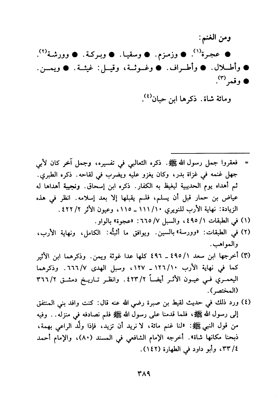 ومائة شاة. ذكرها ابن حبان (¬4).